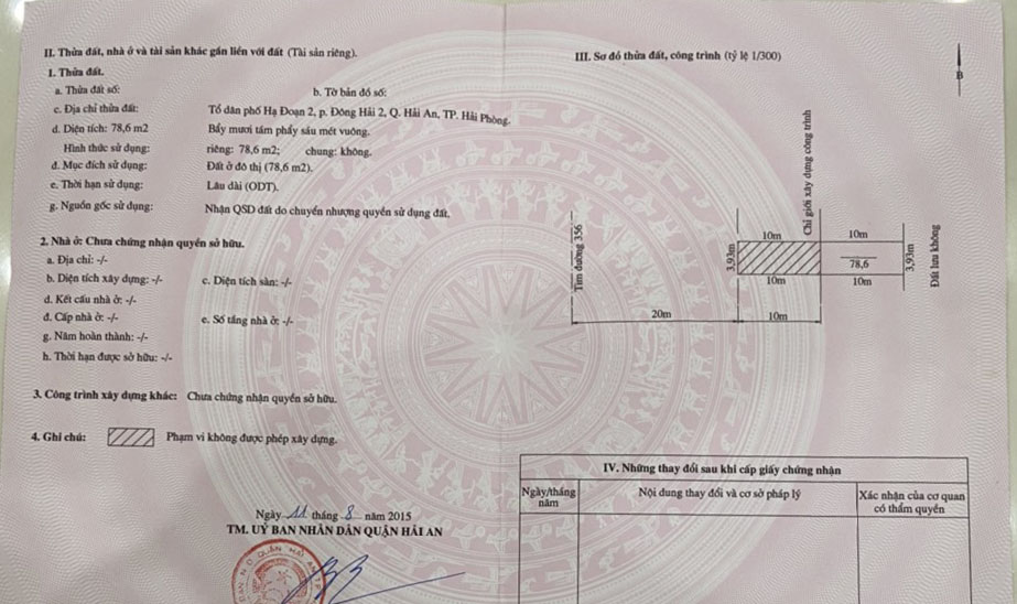 - Diện tích lô 1 : 3.9 x 20 = 78.6m2