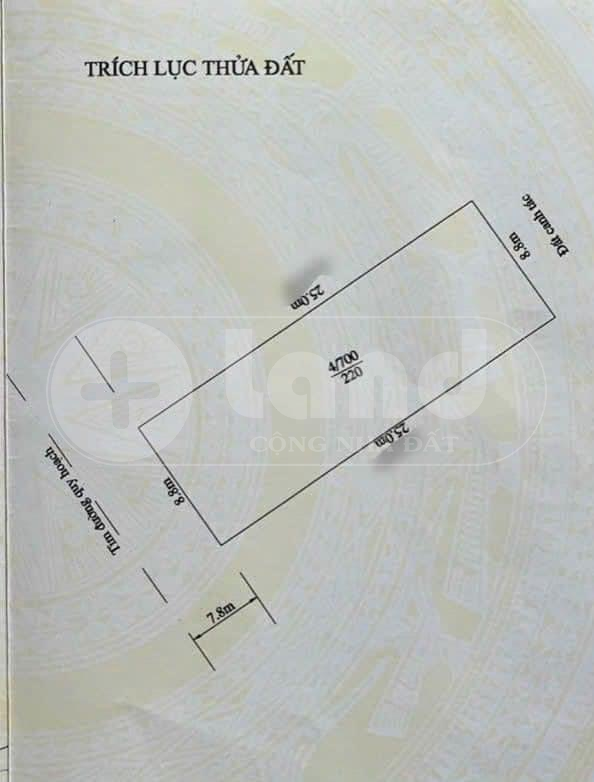 - Diện tích : 220m ( mặt tiền 8.8m) đường trước mặt 15m phía sau đường 7m