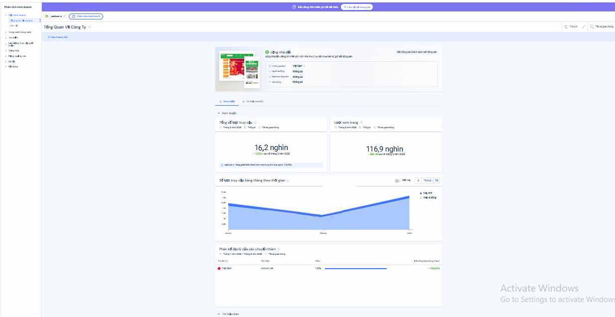 Nhìn bảng số liệu tháng qua, Trang Web Cộng Nhà Đất đạt tổng lưu lượng truy cập là 16,2k người quan tâm đến các hạng mục BĐS được Trang đăng tải. Và số lượng người ghé thăm lên đến 116,9k người và số lượng này tìm đến qua tìm kiếm từ khóa trên Google